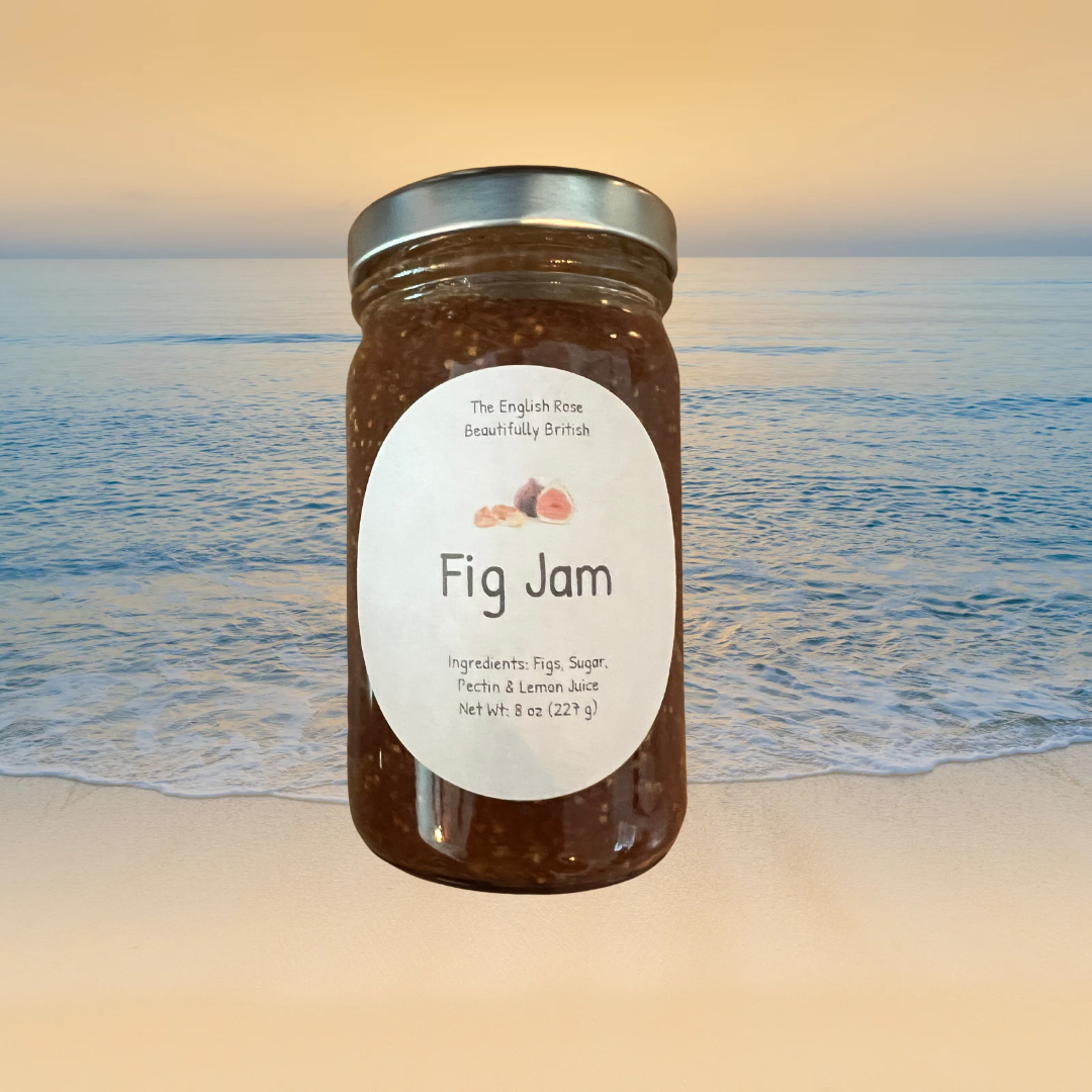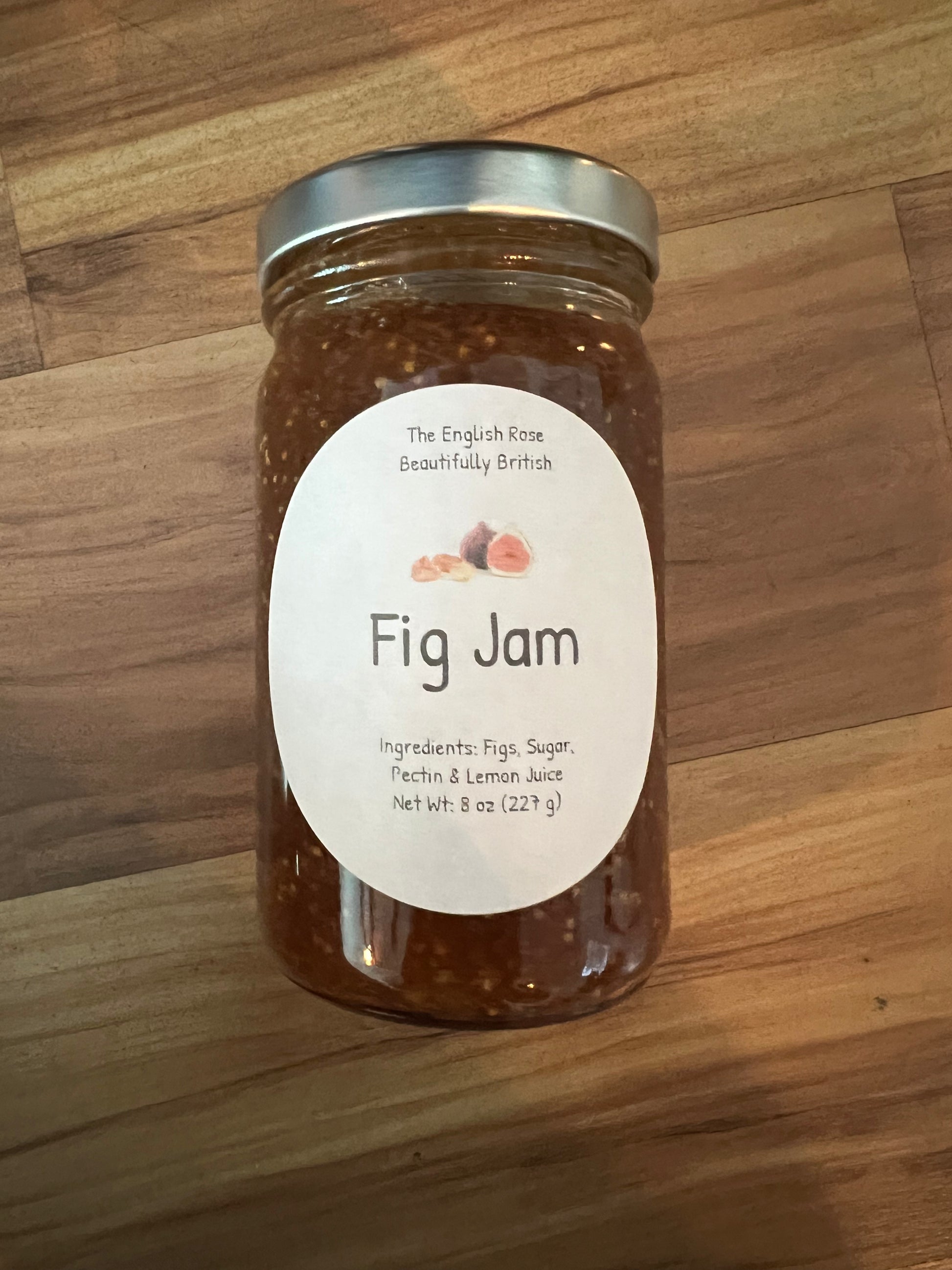Fig jam by The English Rose "Beautifully British" Jams and Spice Blends is hand-crafted and comes in an 8 ounce jar.