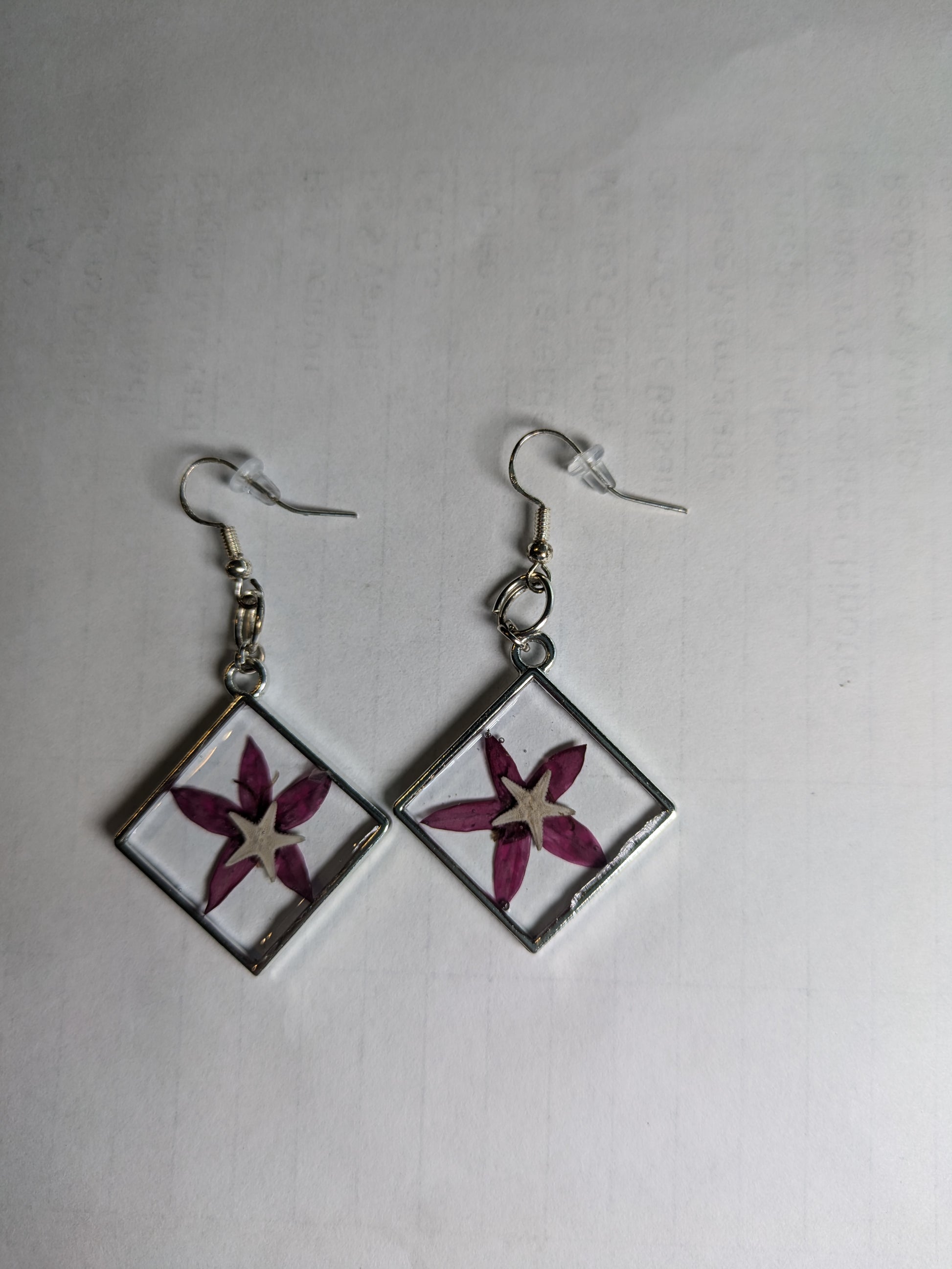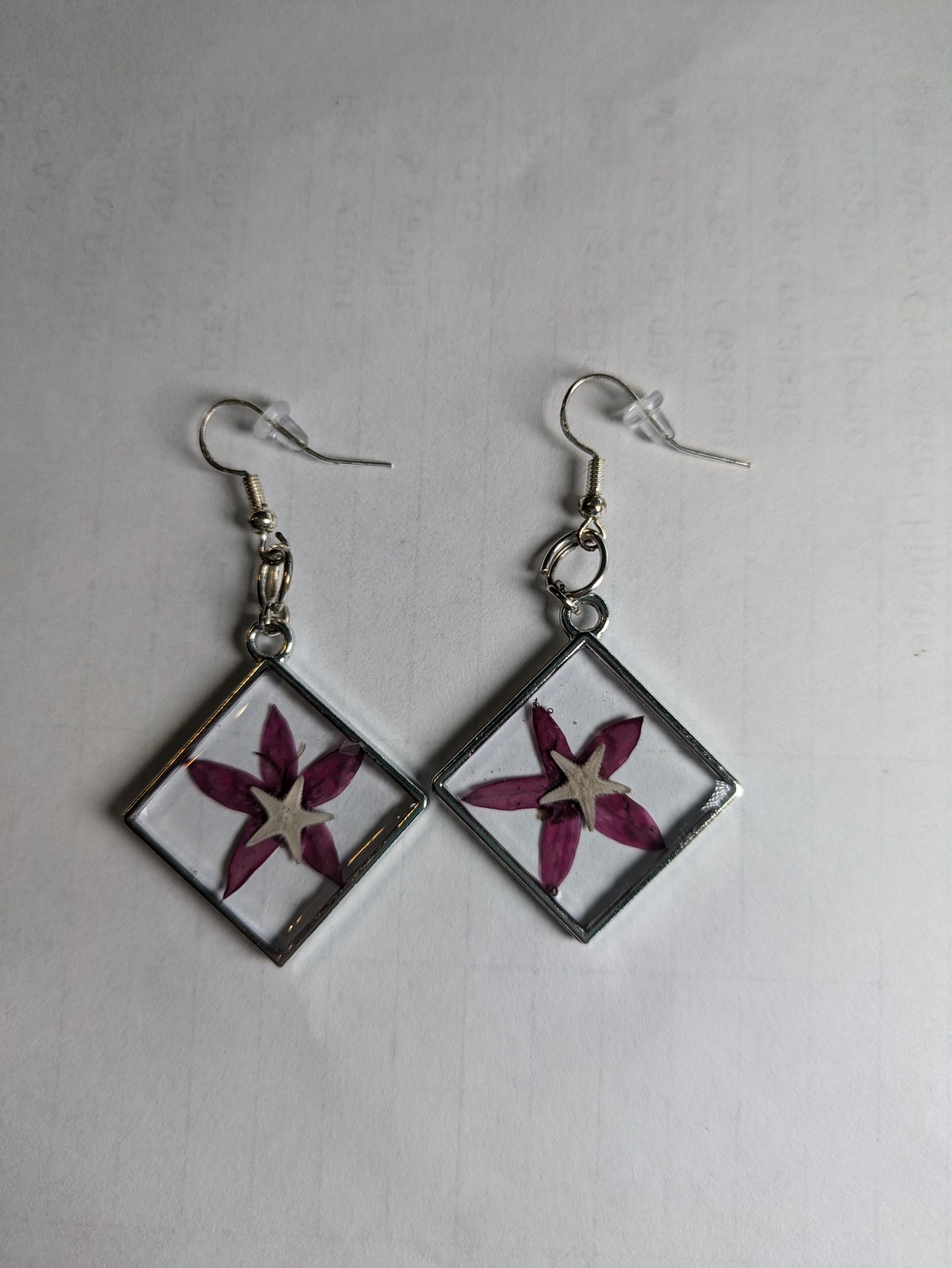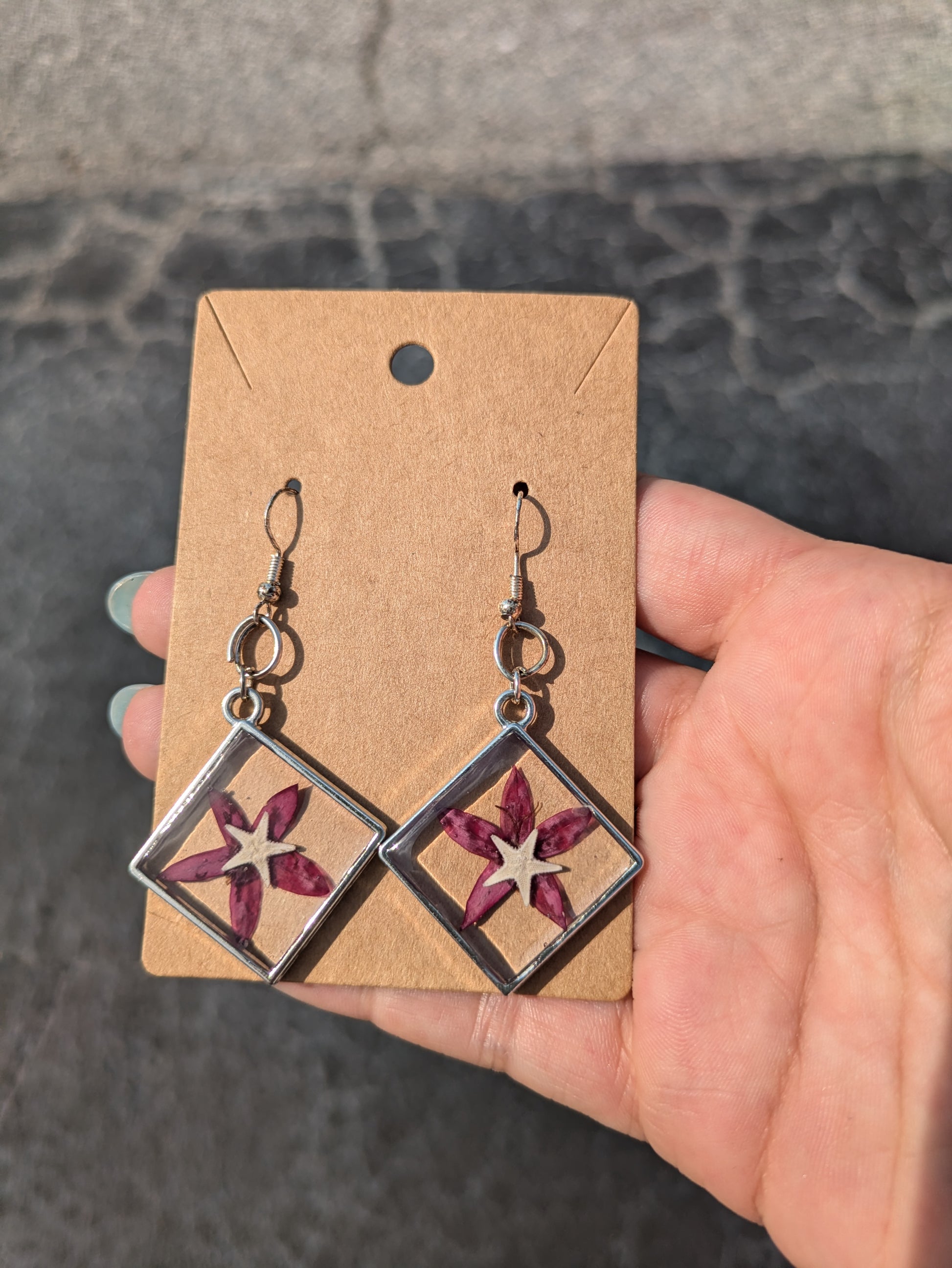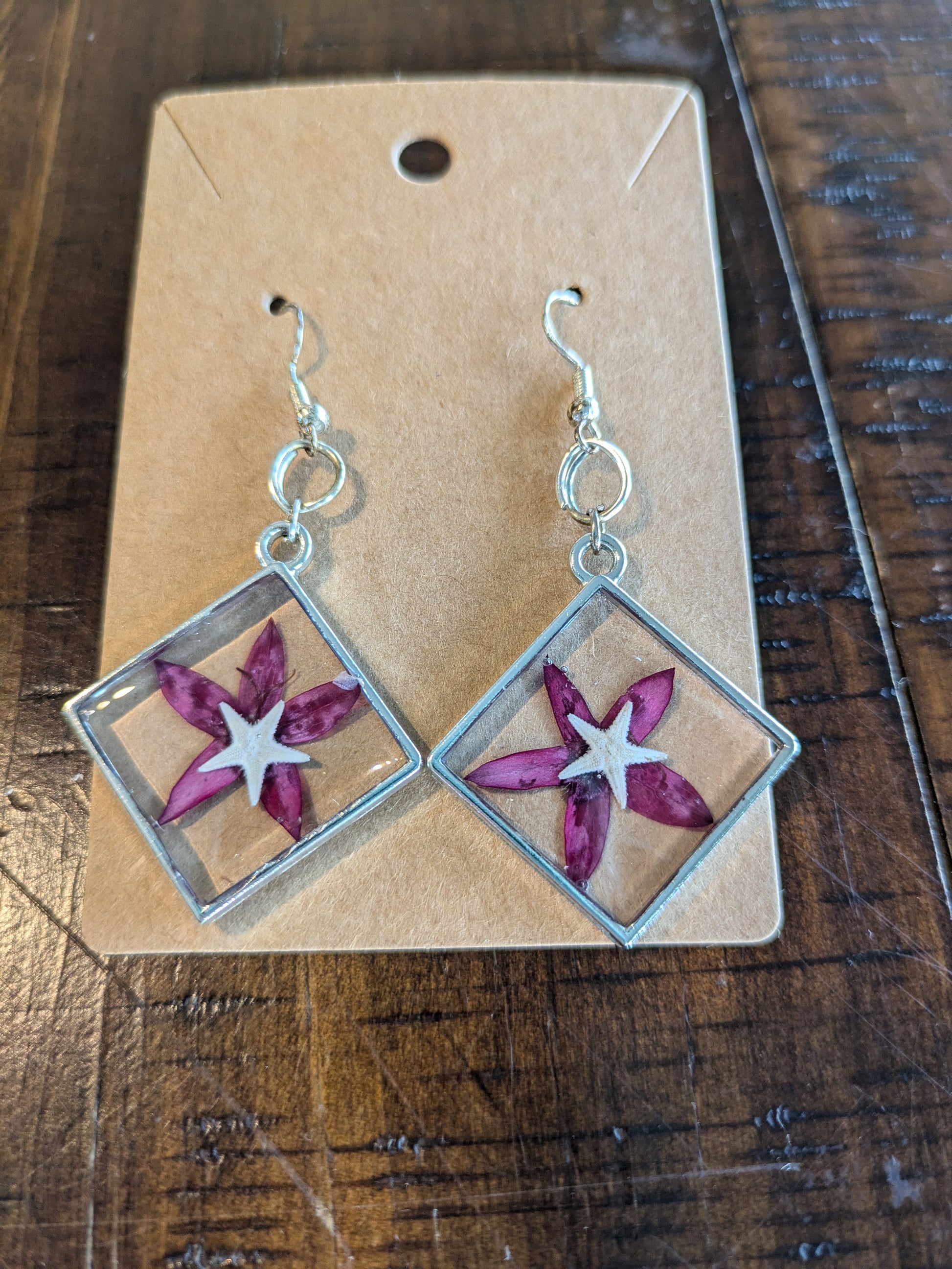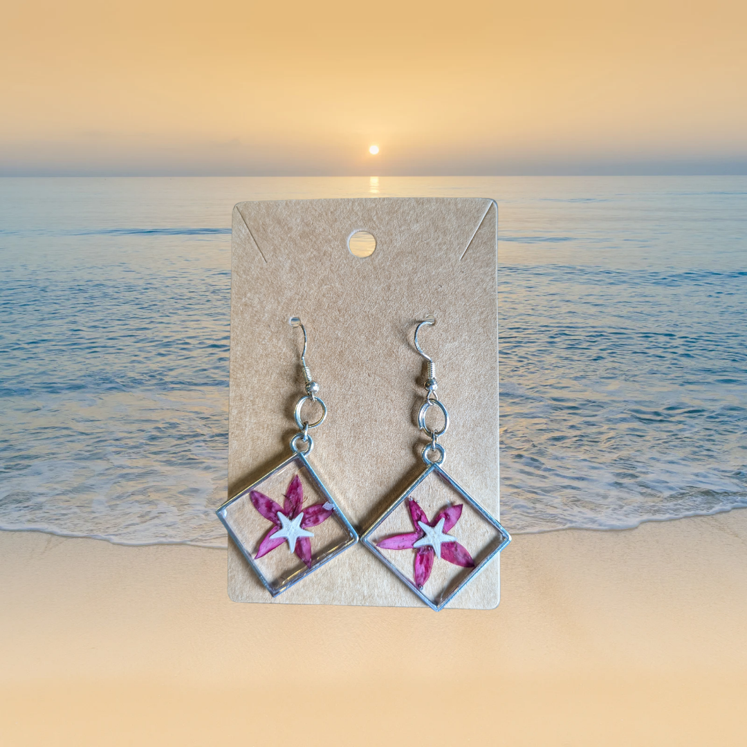 Pressed Flower Starfish Earrings 2 1/2 inch