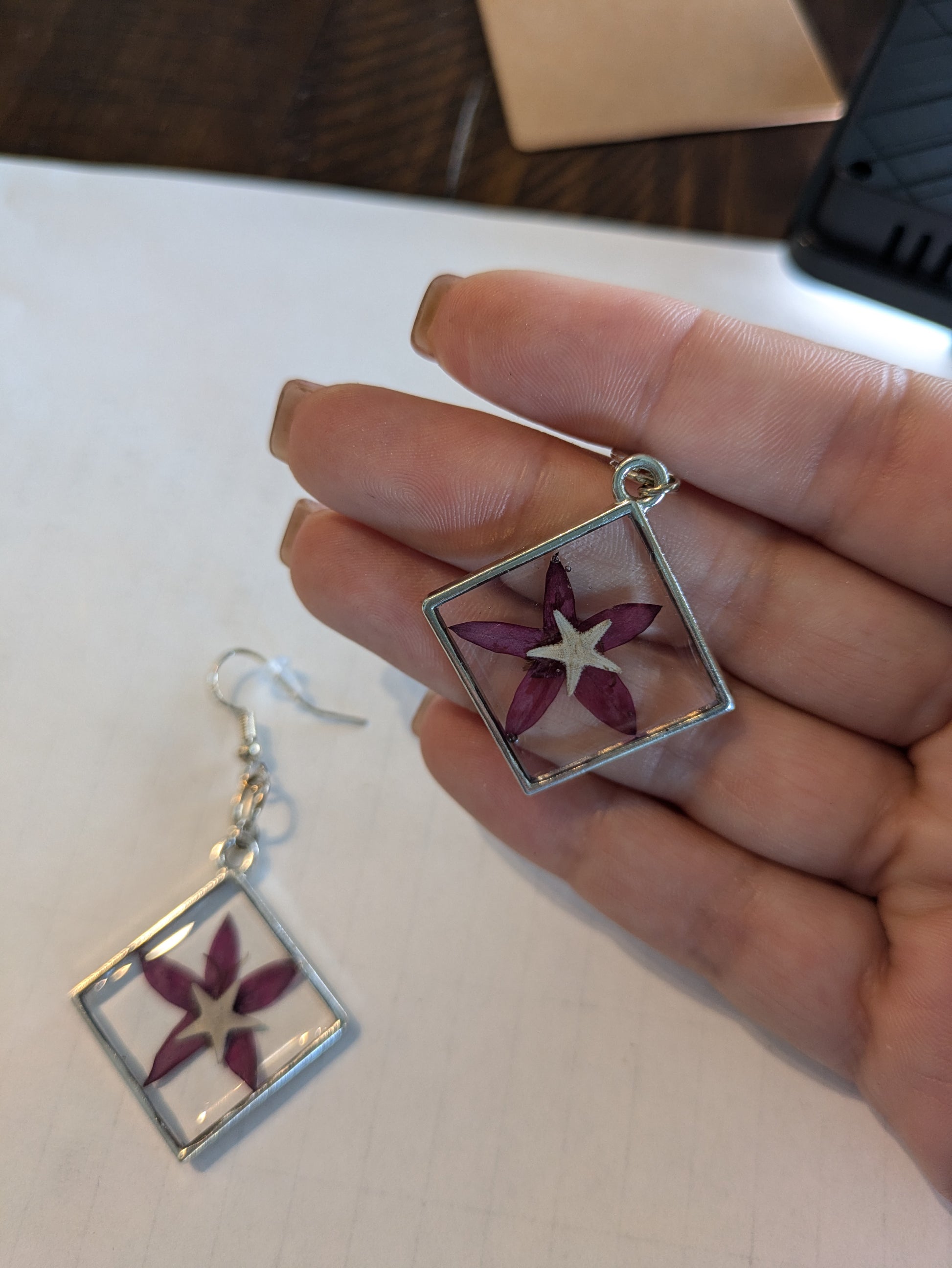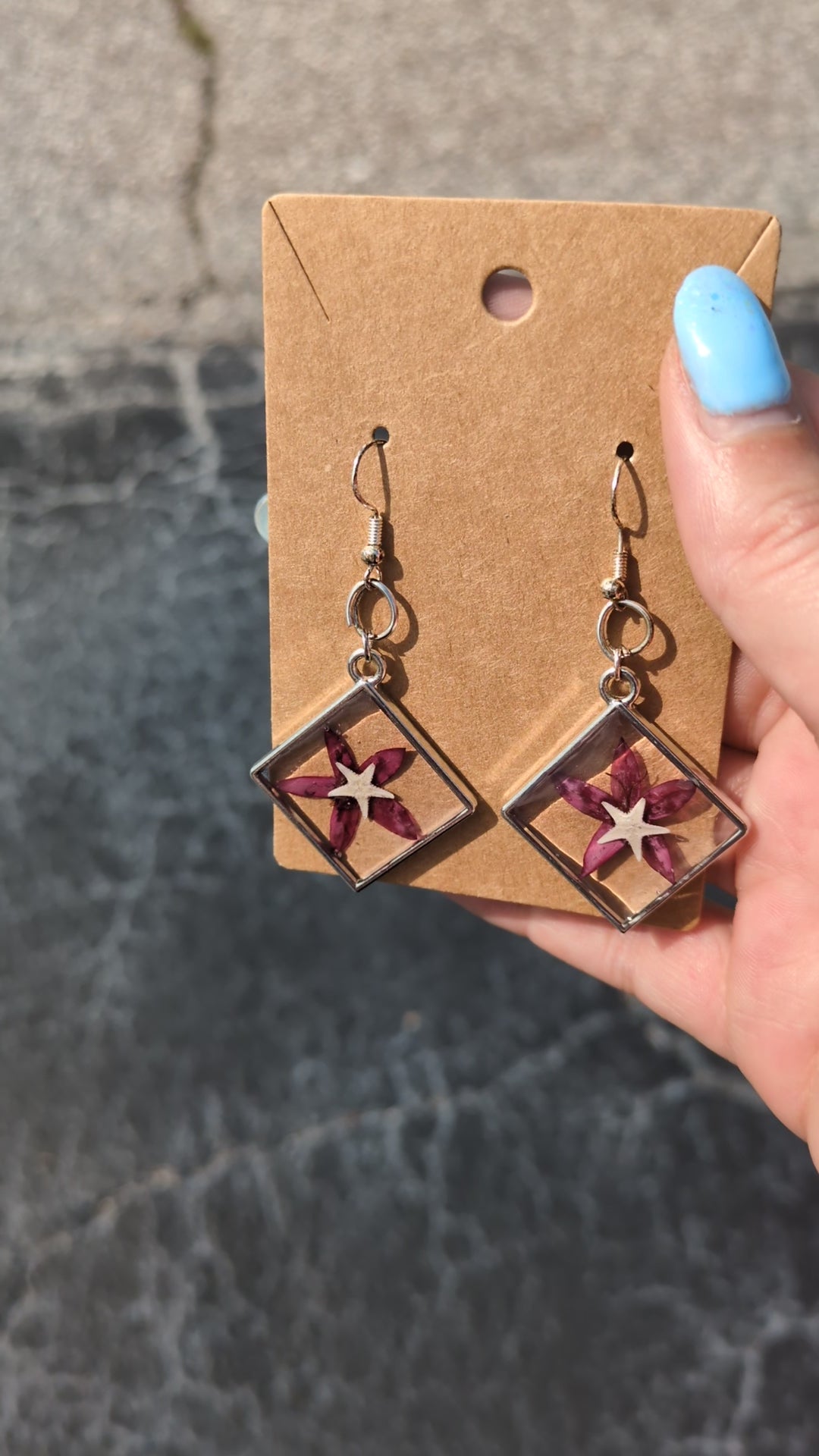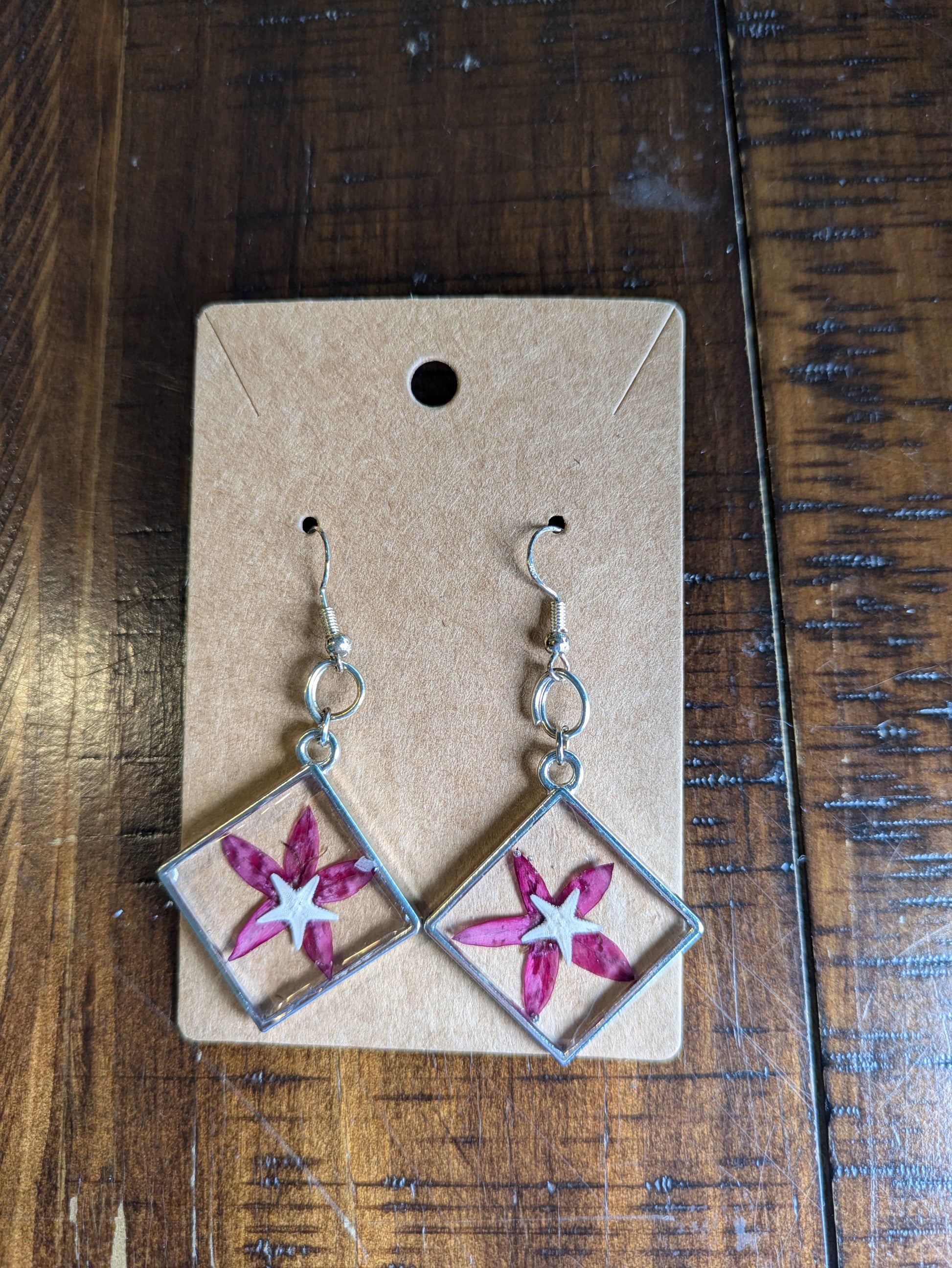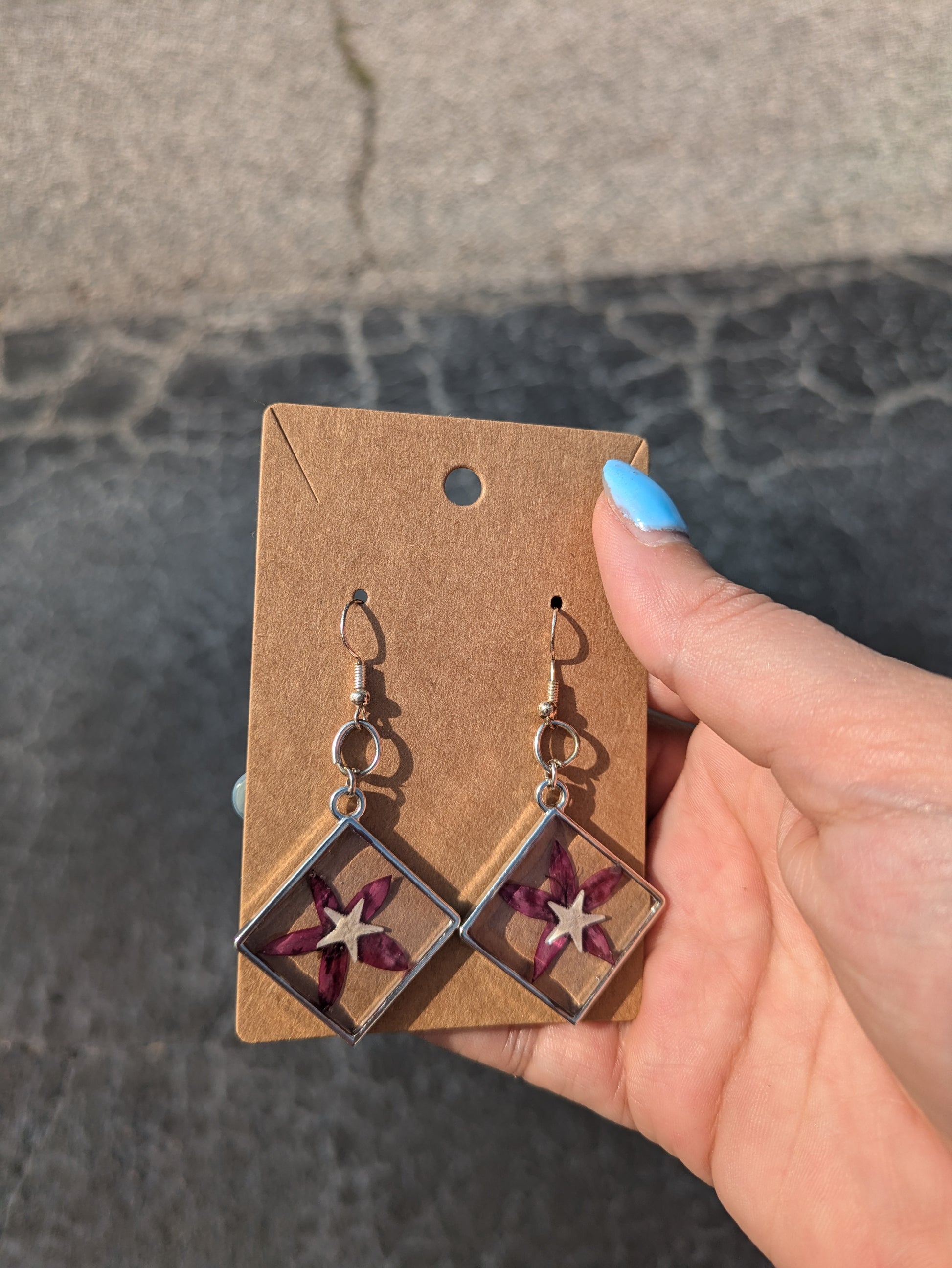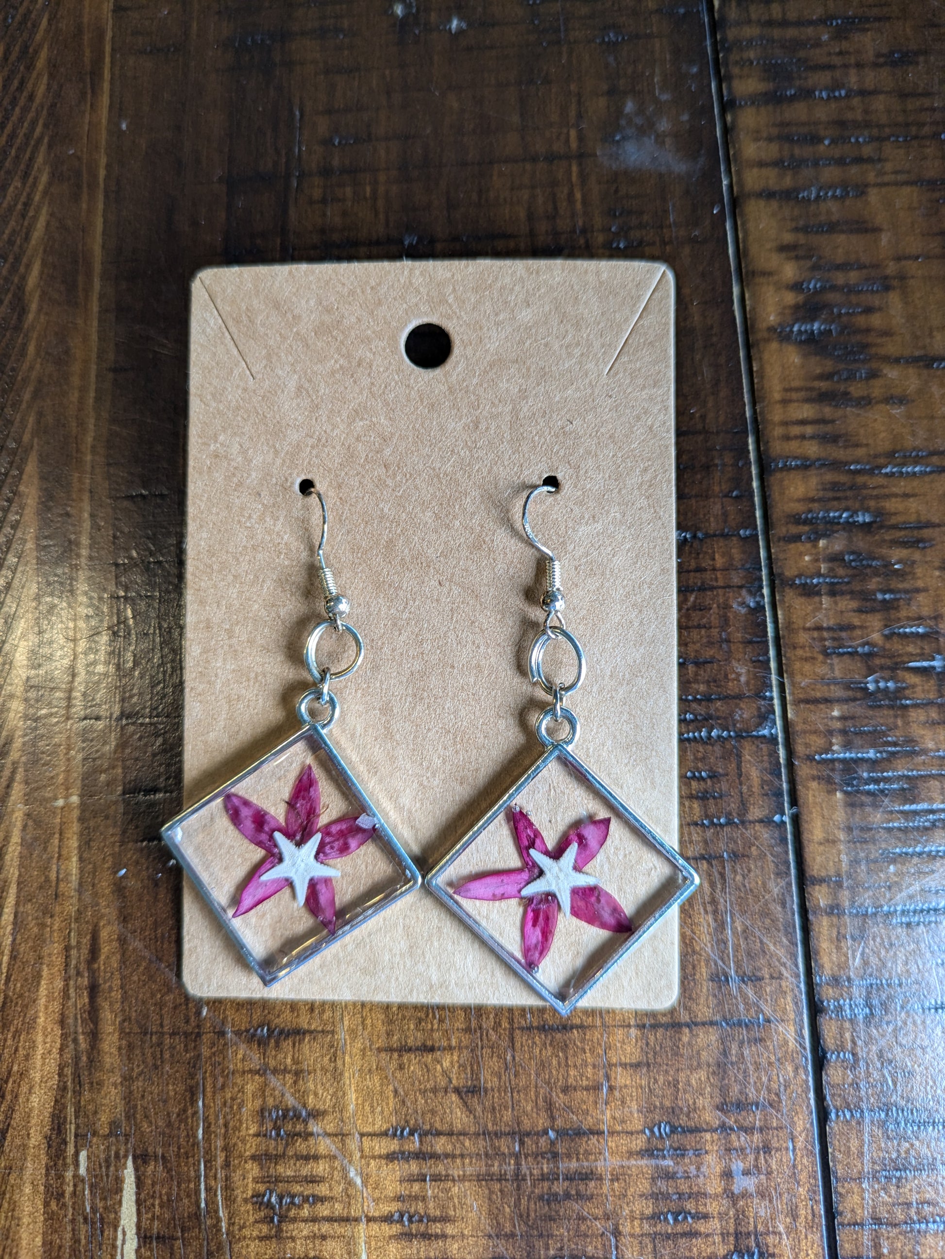 Pressed Flower Starfish Earrings 2 1/2 inch