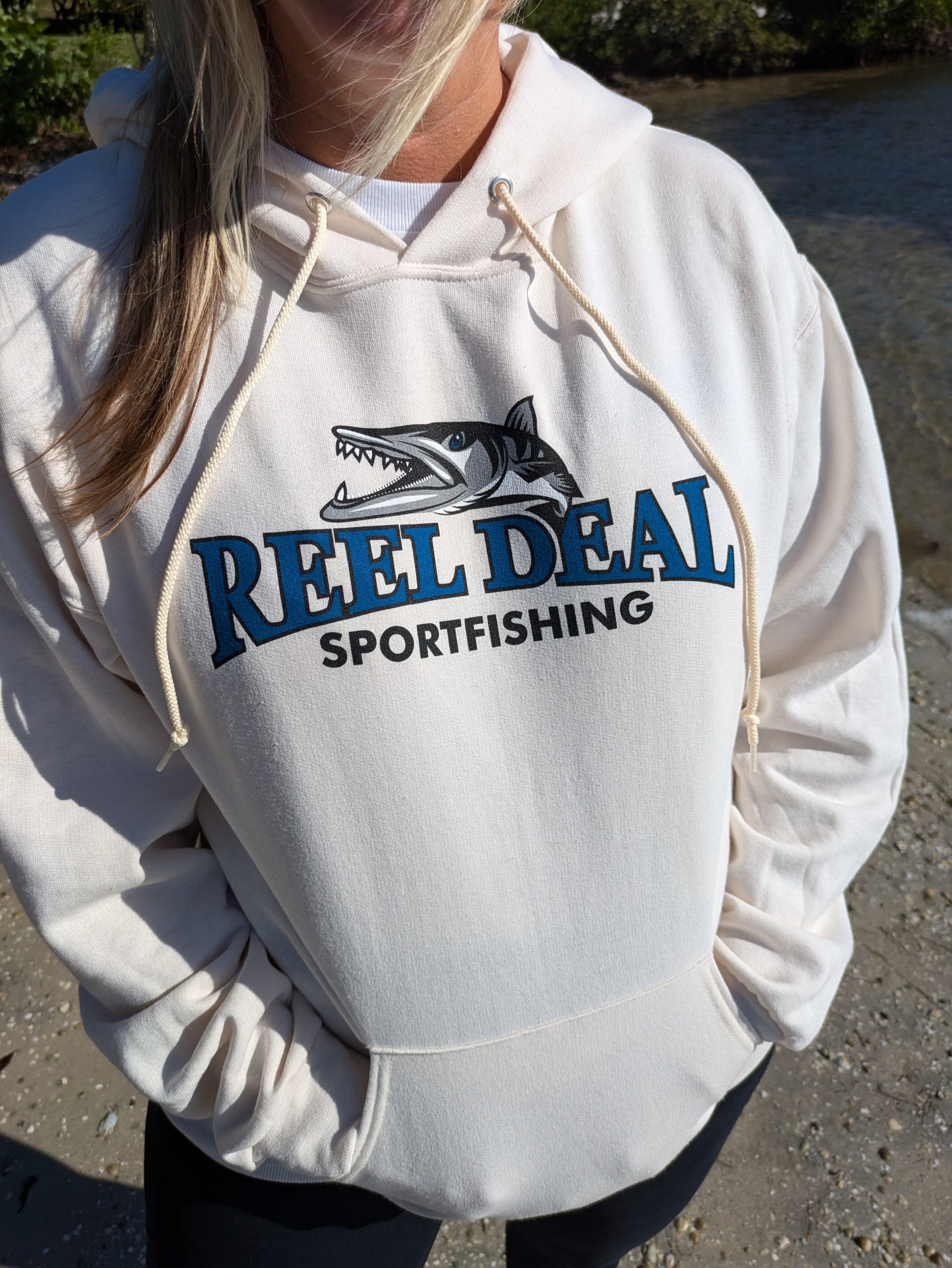 Introducing our Reel Deal Sportfishing Pullover Hooded Sweatshirt! Made from a perfect blend of 50% cotton and 50% polyester, this soft and comfortable sweatshirt is perfect for any outdoor adventure. Stay warm in style with our unique color, Sweet Cream. Get your reel deal hoodie now!