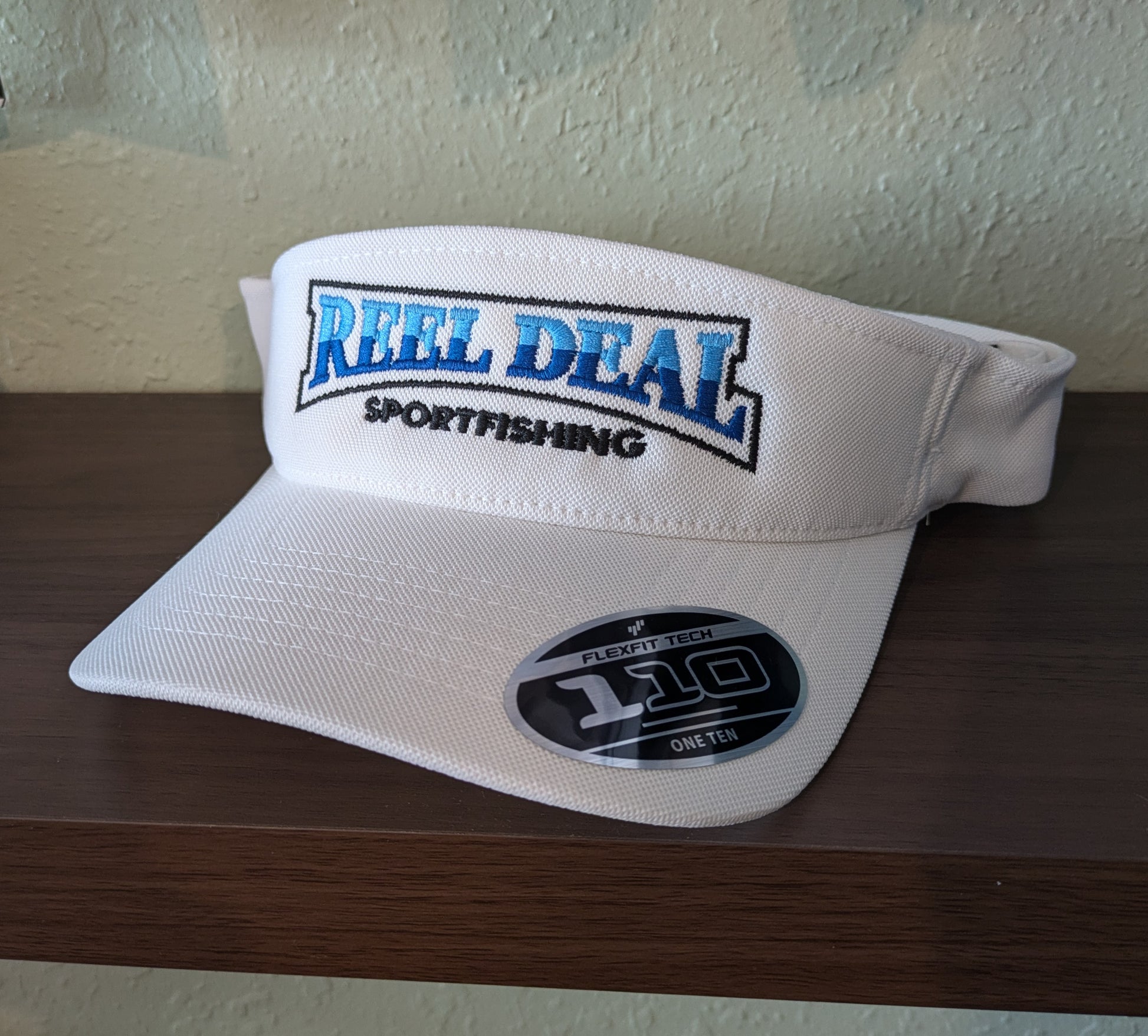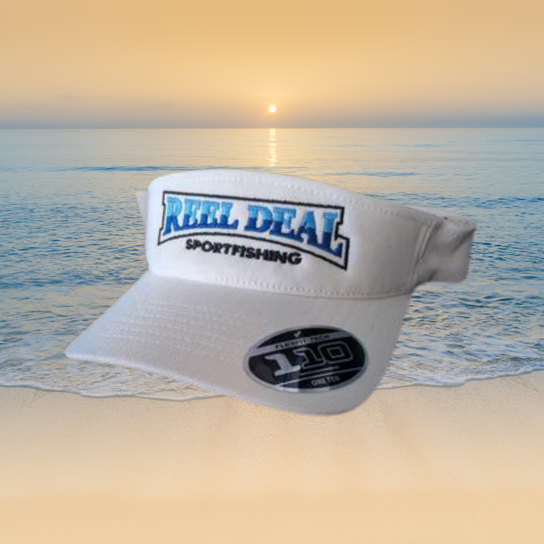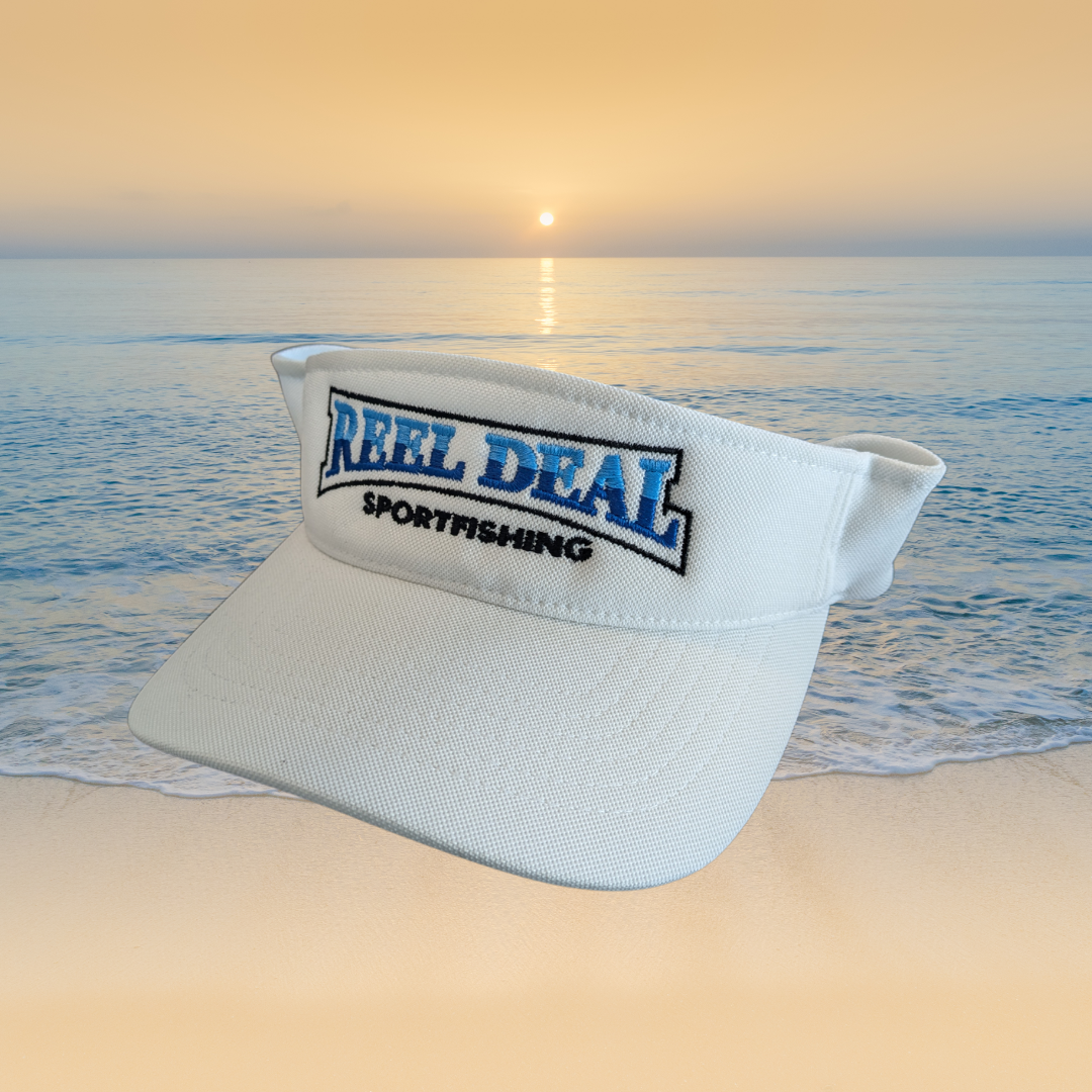 Get your head in the game with the Reel Deal Visor! This white visor features our signature embroidered logo and an adjustable Velcro back. Perfect for any sunny day, this visor will keep you cool and stylish. Time to reel in the compliments!